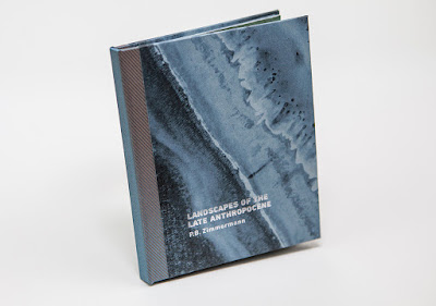 Last Fall, Brad Freeman, of the Journal of Artists’ Books (JAB), wrote to me and asked if I would like to contribute an artists’ book to JAB Issue No.41, to be printed in the Spring of 2017. He gave me a number of possible size formats and I picked a smaller sized one that was 48 pages. The two-page spreads were to be four-color, alternating with a duotone spread using a color pair of my own devising. The book that I had originally planned was to be larger than JAB’s 4.5” x 5.5” size format with the whole book full color. But I liked the idea of using a dark-blue Pantone spot color, with silver as the duotone set for the alternating pages, since I rarely get to use metallic silver (or offset) anymore. I love silver offset ink, and metallic inks are rarely available to me now that I mostly use pigmented inkjet or digital print-on-demand for printing my books. I decided to have Brad Freeman produce this as a special version of the book for JAB, but I still plan to do a larger and longer version of the same subject matter. Brad agreed to send me 20 unbound printed copies of the JAB No.41 version so that I could 'case' those in and give them out to family and friends. In general, I don’t like self-covering books like the version that is included in the JAB journal, though I am grateful for the excellent production and printing that Brad and his grad student achieved. They did a great job.